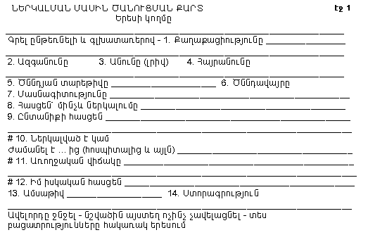 ՆԵՐԿԱԼՄԱՆ ՄԱՍԻՆ ԾԱՆՈՒՑՄԱՆ ՔԱՐՏ