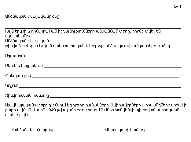 Կոնվենցիայի տարբերիչ դրոշակը կարող է բարձրացվել այն սանիտարական կազմավորումների և հիմնարկների վրա, որոնց համար այդ Կոնվենցիան ապահովում է հովանավորություն, ընդսմին` միայն զինվորական իշխանությունների համաձայնությամբ: