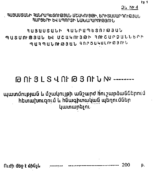 ՊԱՏՄՈՒԹՅԱՆ ԵՎ ՄՇԱԿՈՒՅԹԻ ԱՆՇԱՐԺ ՀՈՒՇԱՐՁԱՆՆԵՐԻ ՊԵՏԱԿԱՆ ՀԱՇՎԱՌՄԱՆ, ՈՒՍՈՒՄՆԱՍԻՐՄԱՆ, ՊԱՀՊԱՆՈՒԹՅԱՆ, ԱՄՐԱԿԱՅՄԱՆ, ՆՈՐՈԳՄԱՆ, ՎԵՐԱԿԱՆԳՆՄԱՆ ԵՎ ՕԳՏԱԳՈՐԾՄԱՆ ԿԱՐԳԸ ՀԱՍՏԱՏԵԼՈՒ ՄԱՍԻՆ