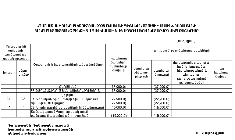 ՀԱՅԱՍՏԱՆԻ ՀԱՆՐԱՊԵՏՈՒԹՅԱՆ 2006 ԹՎԱԿԱՆԻ ՊԵՏԱԿԱՆ ԲՅՈՒՋԵԻ ՄԱՍԻՆ