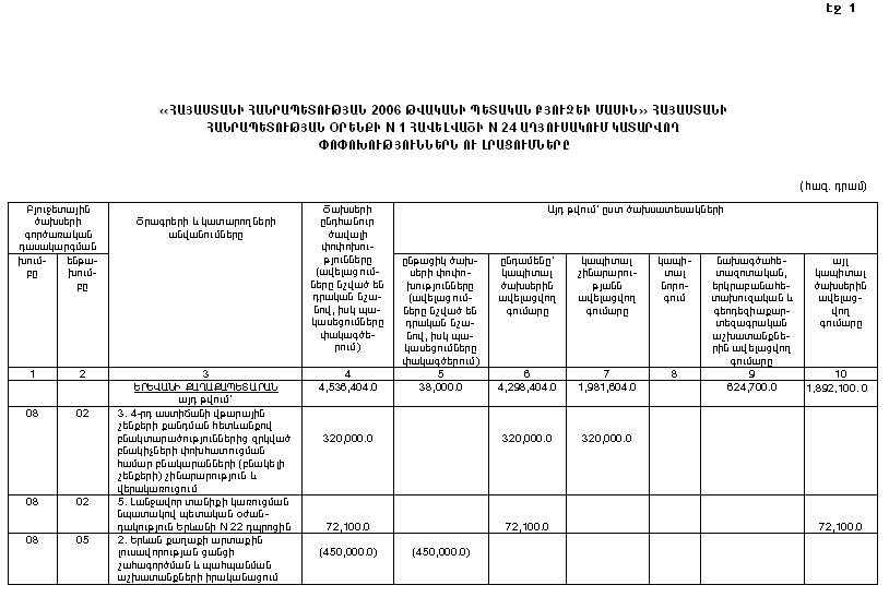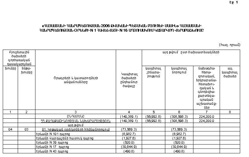 1) Հայաստանի Հանրապետության 2006 թվականի համախմբված բյուջեն կկազմի՝