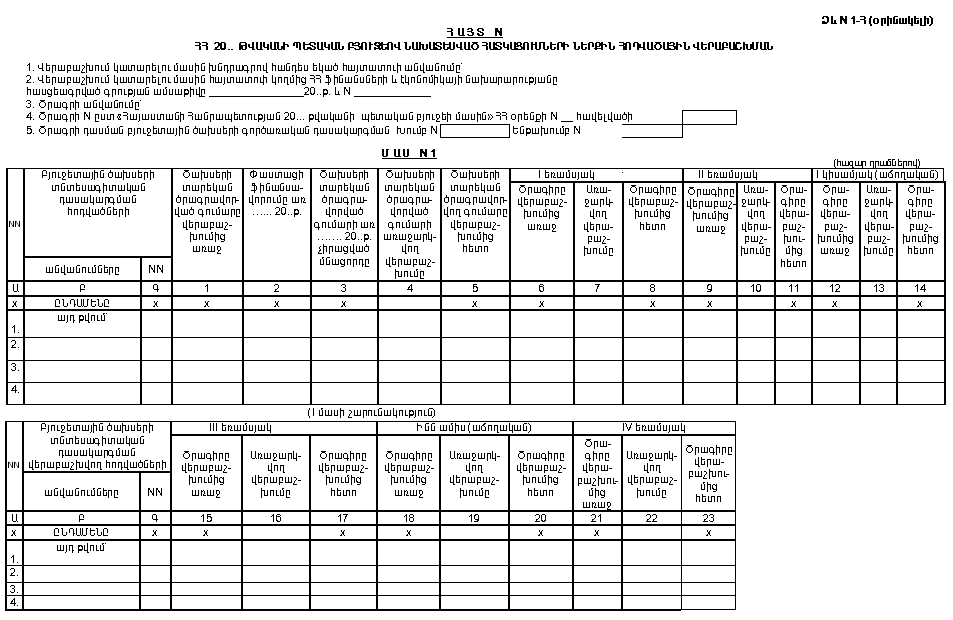 ՀՀ 20.. ԹՎԱԿԱՆԻ ՊԵՏԱԿԱՆ ԲՅՈՒՋԵՈՎ ՆԱԽԱՏԵՍՎԱԾ ՀԱՏԿԱՑՈՒՄՆԵՐԻ ՆԵՐՔԻՆ ՀՈԴՎԱԾԱՅԻՆ ՎԵՐԱԲԱՇԽՄԱՆ