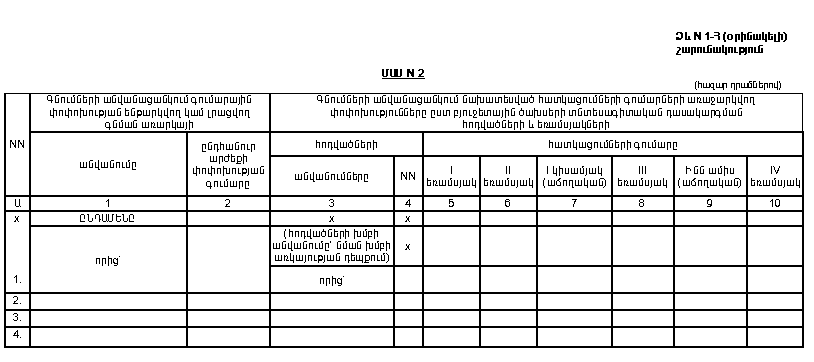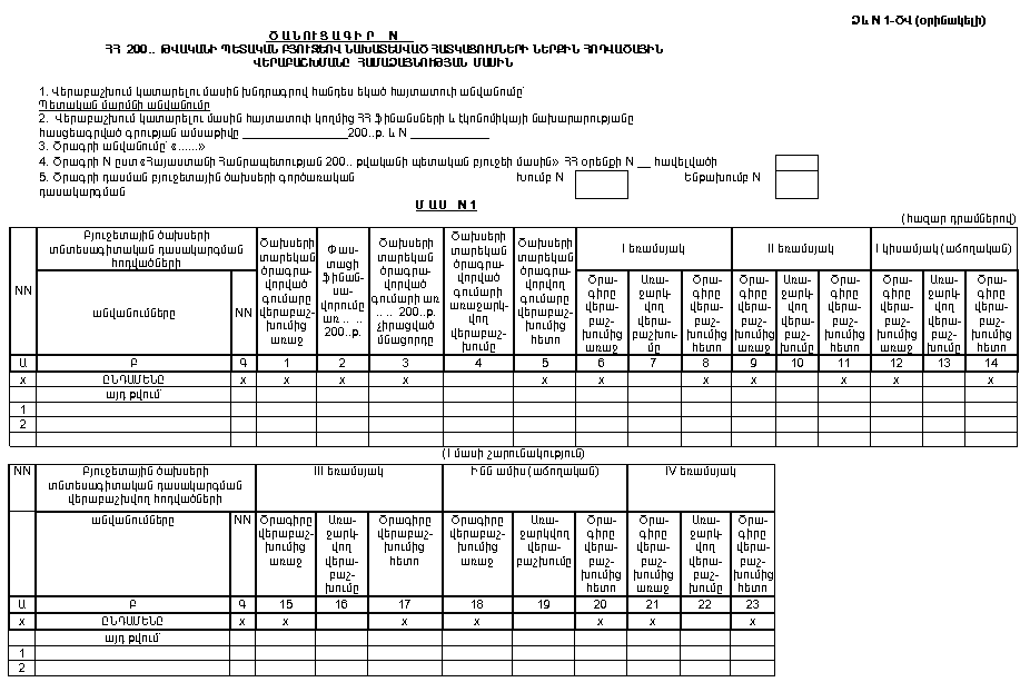 ՀԱՅԱՍՏԱՆԻ ՀԱՆՐԱՊԵՏՈՒԹՅԱՆ ՏՎՅԱԼ ՏԱՐՎԱ ՊԵՏԱԿԱՆ ԲՅՈՒՋԵՈՎ ՆԱԽԱՏԵՍՎԱԾ ԾԱԽՍԱՅԻՆ ԾՐԱԳՐԵՐԻ ԳԾՈՎ ԲՅՈՒՋԵՏԱՅԻՆ ԾԱԽՍԵՐԻ ՏՆՏԵՍԱԳԻՏԱԿԱՆ ԴԱՍԱԿԱՐԳՄԱՆ ՀՈԴՎԱԾՆԵՐՈՎ ՀԱՍՏԱՏՎԱԾ ՀԱՏԿԱՑՈՒՄՆԵՐԻ ԳՈՒՄԱՐՆԵՐԻ` ԸՍՏ ԲՅՈՒՋԵՏԱՅԻՆ ԾԱԽՍԵՐԻ ՏՆՏԵՍԱԳԻՏԱԿԱՆ ԴԱՍԱԿԱՐԳՄԱՆ ՀՈԴՎԱԾՆԵՐԻ ՎԵՐԱԲԱՇԽՈՒՄՆԵՐԻ, ԻՆՉՊԵՍ ՆԱԵՎ ԲՅՈՒՋԵՏԱՅԻՆ ՀԱՏԿԱՑՈՒՄՆԵՐԻ ՀԱՇՎԻՆ ՊԵՏԱԿԱՆ ԿԱՐԻՔՆԵՐԻ ՀԱՄԱՐ ԳՆՈՒՄՆԵՐԻ ԱՆՎԱՆԱՑԱՆԿՈՒՄ, ԲՅՈՒՋԵՏԱՅԻՆ ՀԱՏԿԱՑՈՒՄՆԵՐԻ ՎԵՐԱԲԱՇԽՈՒՄՆԵՐՈՎ ՉՊԱՅՄԱՆԱՎՈՐՎԱԾ, ՓՈՓՈԽՈՒԹՅՈՒՆՆԵՐԻ ԵՎ ԼՐԱՑՈՒՄՆԵՐԻ ԻՐԱԿԱՆԱՑՄԱՆ ԿԱՐԳԸ ՍԱՀՄԱՆԵԼՈՒ ՄԱՍԻՆ