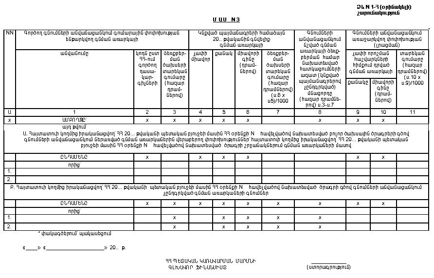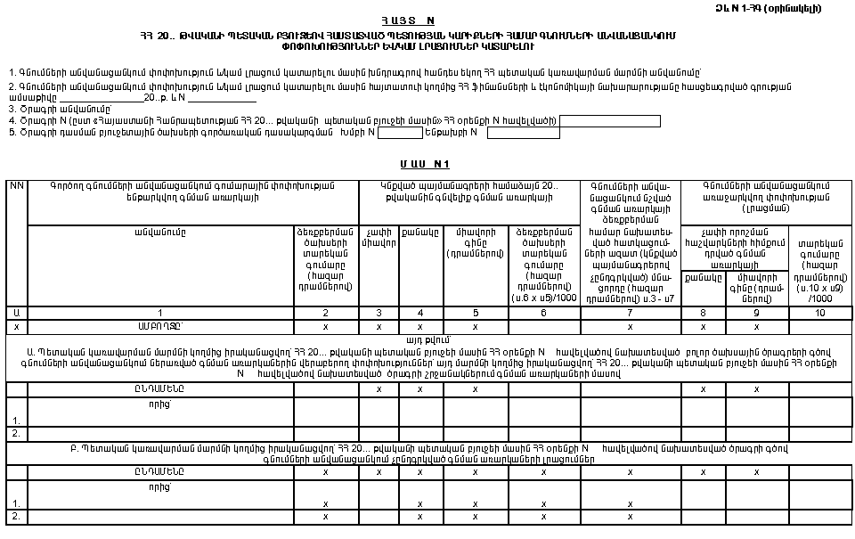 ՀՀ 20.. ԹՎԱԿԱՆԻ ՊԵՏԱԿԱՆ ԲՅՈՒՋԵՈՎ ՀԱՍՏԱՏՎԱԾ ՊԵՏՈՒԹՅԱՆ ԿԱՐԻՔՆԵՐԻ ՀԱՄԱՐ ԳՆՈՒՄՆԵՐԻ ԱՆՎԱՆԱՑԱՆԿՈՒՄ ՓՈՓՈԽՈՒԹՅՈՒՆՆԵՐ ԵՎ/ԿԱՄ ԼՐԱՑՈՒՄՆԵՐ ԿԱՏԱՐԵԼՈՒ