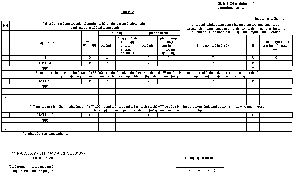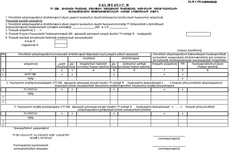 ՀՀ 200.. ԹՎԱԿԱՆԻ ՊԵՏԱԿԱՆ ԲՅՈՒՋԵՈՎ ՀԱՍՏԱՏՎԱԾ ՊԵՏՈՒԹՅԱՆ ԿԱՐԻՔՆԵՐԻ ՀԱՄԱՐ ԳՆՈՒՄՆԵՐԻ ԱՆՎԱՆԱՑԱՆԿՈՒՄ ՓՈՓՈԽՈՒԹՅՈՒՆՆԵՐԻ ԵՎ/ԿԱՄ ԼՐԱՑՈՒՄՆԵՐԻ ՄԱՍԻՆ