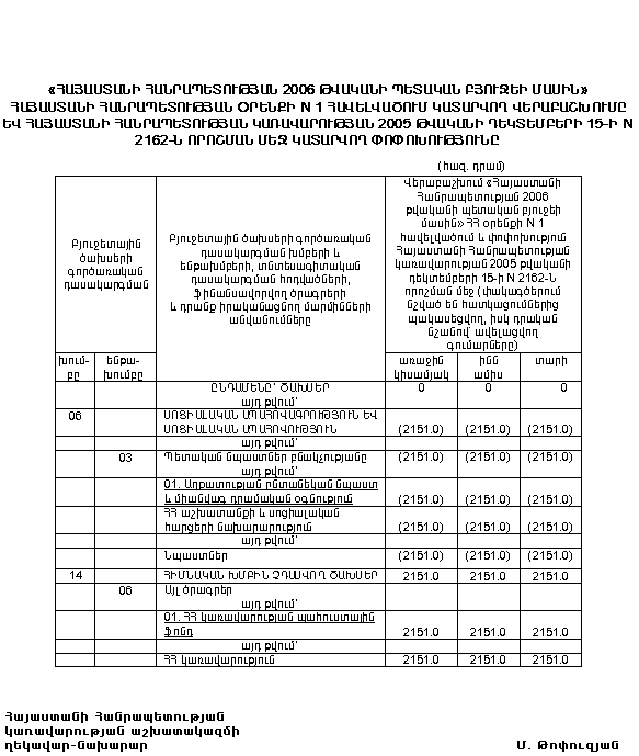 ՀԱՅԱՍՏԱՆԻ ՀԱՆՐԱՊԵՏՈՒԹՅԱՆ 2006 ԹՎԱԿԱՆԻ ՊԵՏԱԿԱՆ ԲՅՈՒՋԵԻ ՄԱՍԻՆ