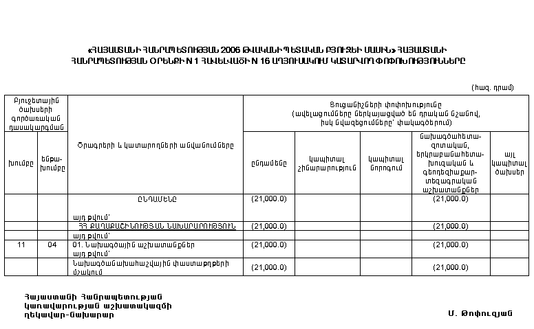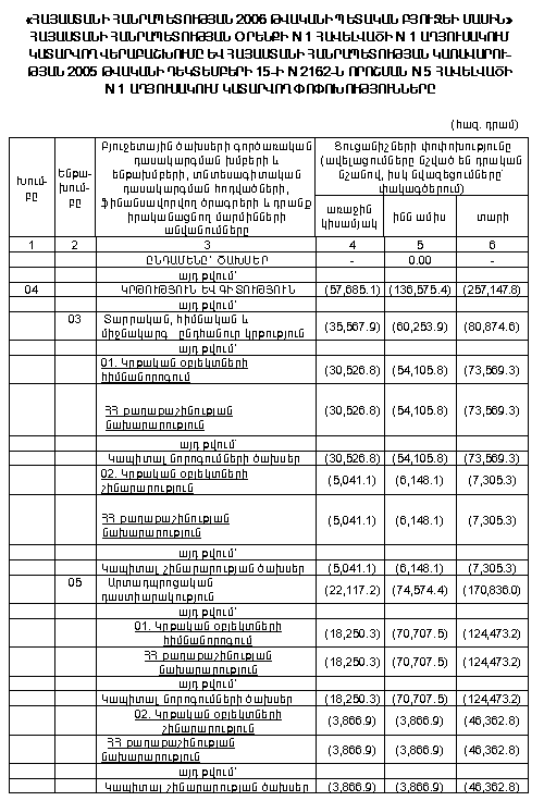 (Հավելվածները փոփ. Հավելված N 1, Հավելված N 1 N 15 աղյուսակ էջ1, 2, Հավելված N 1 N 16 աղյուսակ, Հավելված N 1 26.01.06 N 43-Ն, 26.01.06 N 63-Ն, 09.02.06 N 165-Ն, Հավելված 1 09.03.06 N 236-Ն, Հավելված N 1 N 16-րդ աղյուսակ էջ 1, 2 09.03.06 N 252-Ն, Հավելված N 1, Հավելված N 1 16-րդ աղյուսակ 09.03.06 N 418-Ն, Հավելված N 1, Հավելված N 5 23.09.06 N 398-Ն, Հավելված N 1 23.03.06 N 353-Ն, Հավելված N 1 N 1 աղյուսակ, Հավելված N 1 N 16 աղյուսակ 30.03.06 N 412-Ն, Հավելված N 1 30.03.06 N 427-Ն, Հավելված N 1, N 1 աղյուսակ էջ 1, 2, Հավելված N 1 N 24 աղյուսակ էջ 1, 2, 3 30.03.06 N 485-Ն, Հավելված N 1 06.04.06 N 517-Ն, Հավելված N 1 06.04.06 N 430-Ն, Հավելված N 1 N 1 աղյուսակ էջ 1, 2, 3, Հավելված N 1 N 16 աղյուսակ էջ 1, 2, 3, 4 06.04.06 N 414-Ն, Հավելված N 1 N 1 աղյուսակ էջ 1, 2, Հավելված N 1 N 16 աղյուսակ էջ 1, 2 13.04.06 N 518-Ն, Հավելված N 1 N 16 աղյուսակ 27.04.06 N 662-Ն, Հավելված N 1 27.04.06 N 553-Ն, Հավելված N 1 04.05.06 N 540-Ն, Հավելված N 1 N 16 աղյուսակ 04.05.06 N 541-Ն, Հավելված N 1 N 1 աղյուսակ 04.05.06 N 542-Ն, Հավելված N 1 11.05.06 N 664-Ն, Հավելված N 1, Հավելված N 1, N 16 աղյուսակ 18.05.06 N 657-Ն, Հավելված N 1 26.05.06 N 667-Ն, Հավելված N 1 N 1 աղյուսակ էջ 1, 2, 3, 4, 5 26.05.06 N 676-Ն, Հավելված N 1 N 1 աղյուսակ, Հավելված N 1 N 16 աղյուսակ 26.05.06 N 688-Ն, Հավելված N 1 16.06.06 N 832-Ն, Հավելված N 1, Հավելված N 1 N 17 աղյուսակ 16.06.06 N 847-Ն, Հավելված N 1 N 1 աղյուսակ, Հավելված N 1 N 24 աղյուսակ 22.06.06 N 926-Ն, Հավելված N 1 29.06.06 N 915-Ն, Հավելված N 1 N 1 աղյուսակ, Հավելված N 1 N 16 աղյուսակ, Հավելված N 1 N 22 աղյուսակ 06.07.06 N 933-Ն, Հավելված N 1 N 1 աղյուսակ 20.07.06 N 1009-Ն, Հավելված N 1 N 1 աղյուսակ 20.07.06 N 1011-Ն, Հավելված N 3 20.07.06 N 1027-Ն, Հավելված N 1, Հավելված N 1 N 16 աղյուսակ 27.07.06 N 1030-Ն, Հավելված N 1 N 1 աղյուսակ, Հավելված N 1 N 24 աղյուսակ 27.07.06 N 1062, Հավելված N 1 03.08.06 N 1380-Ն, Հավելված N 1, Հավելված N 1 N 16 աղյուսակ 27.07.06 N 1019-Ն, Հավելված N 1 N 1 աղյուսակ 10.08.06 N 1114-Ն, Հավելված N 1 N 1 աղյուսակ 24.08.06 N 1208-Ն, Հավելված N 1 N 24 աղյուսակ 24.08.06 N 1261-Ն, Հավելված N 1 N 16 աղյուսակ 31.08.06 N 1301-Ն, Հավելված N 1 31.08.06 N 1230-Ն, Հավելված N 1 N 16 աղյուսակ 14.09.06 N 1382-Ն, Հավելված N 1 N 1 աղյուսակ , Հավելված N 1 N 16 աղյուսակ 14.09.06 N 1360-Ն)