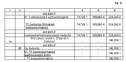 ա) վարչական ծախսերի նախահաշիվը՝ 3,337,432.6 հազար դրամ գումարով` սույն օրենքի N 6 հավելվածի համաձայն,