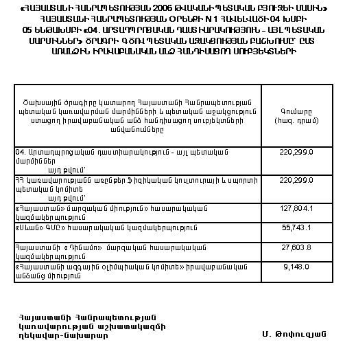 ՀԱՅԱՍՏԱՆԻ ՀԱՆՐԱՊԵՏՈՒԹՅԱՆ 2006 ԹՎԱԿԱՆԻ ՊԵՏԱԿԱՆ ԲՅՈՒՋԵԻ ՄԱՍԻՆ