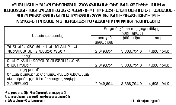 Հոդված 2. Հաստատել Հայաստանի Հանրապետության 2006 թվականի պետական բյուջեն՝