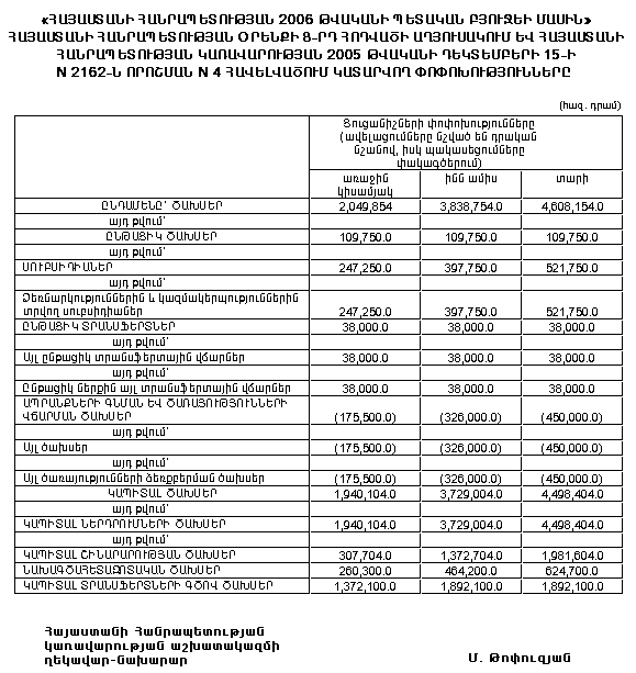 ՀԱՅԱՍՏԱՆԻ ՀԱՆՐԱՊԵՏՈՒԹՅԱՆ 2006 ԹՎԱԿԱՆԻ ՊԵՏԱԿԱՆ ԲՅՈՒՋԵԻ ՄԱՍԻՆ
