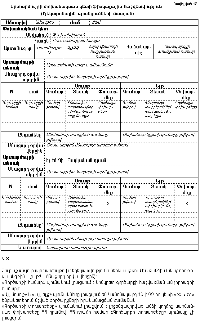 արտարժույթի փոխանակման կետի ֆիսկալային հաշվետվություն (Էլեկտրոնային գրանցումների մատյան)