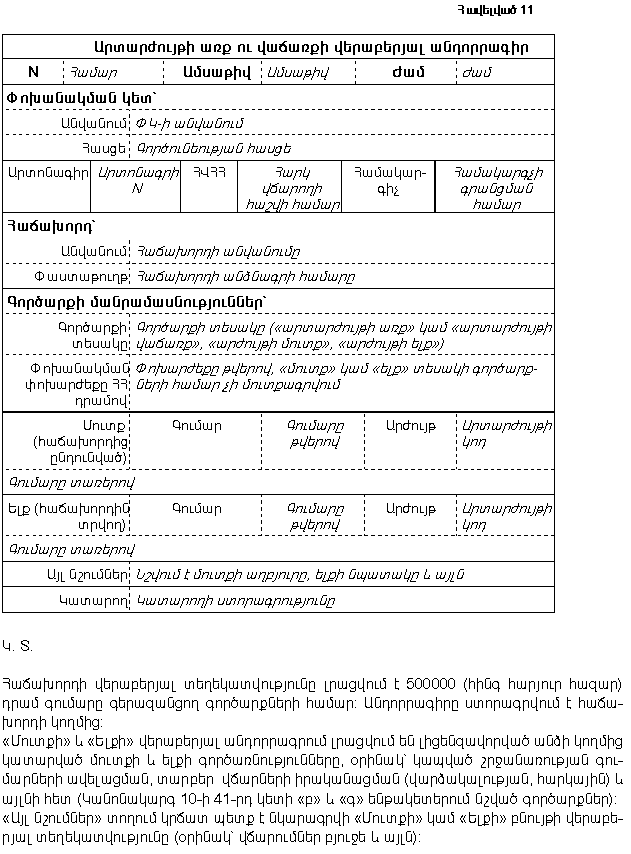 | (Ա/Ձ կամ իրավաբանական անձ փոխանակման կետի անունը, ազգանունը կամ անվանումը) |
