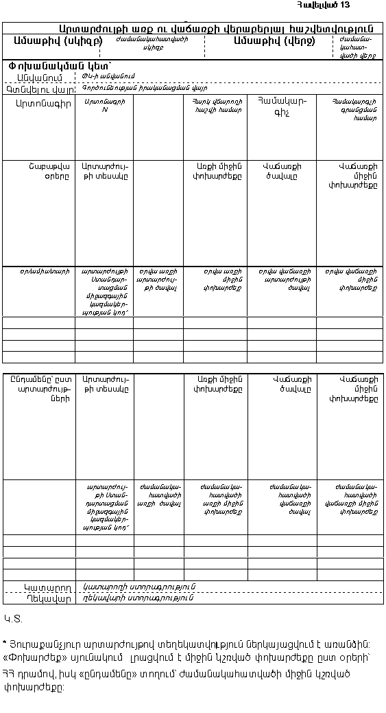արտարժույթի առք ու վաճառքի վերաբերյալ հաշվետվություն