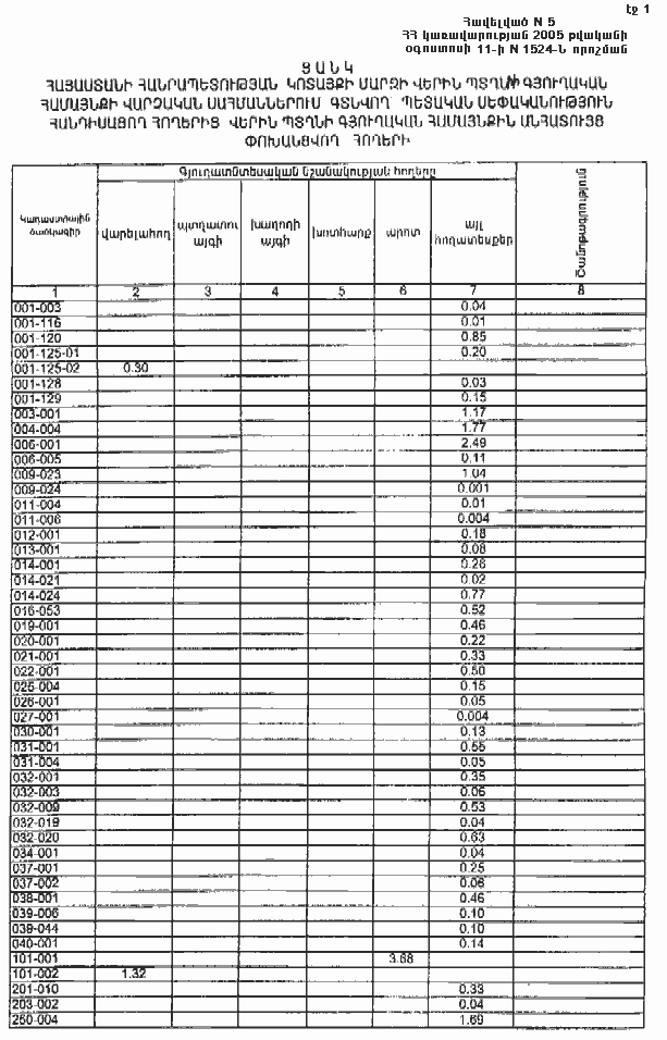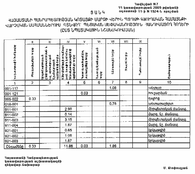 11 օգոստոսի 2005 թվականի N 1524-Ն