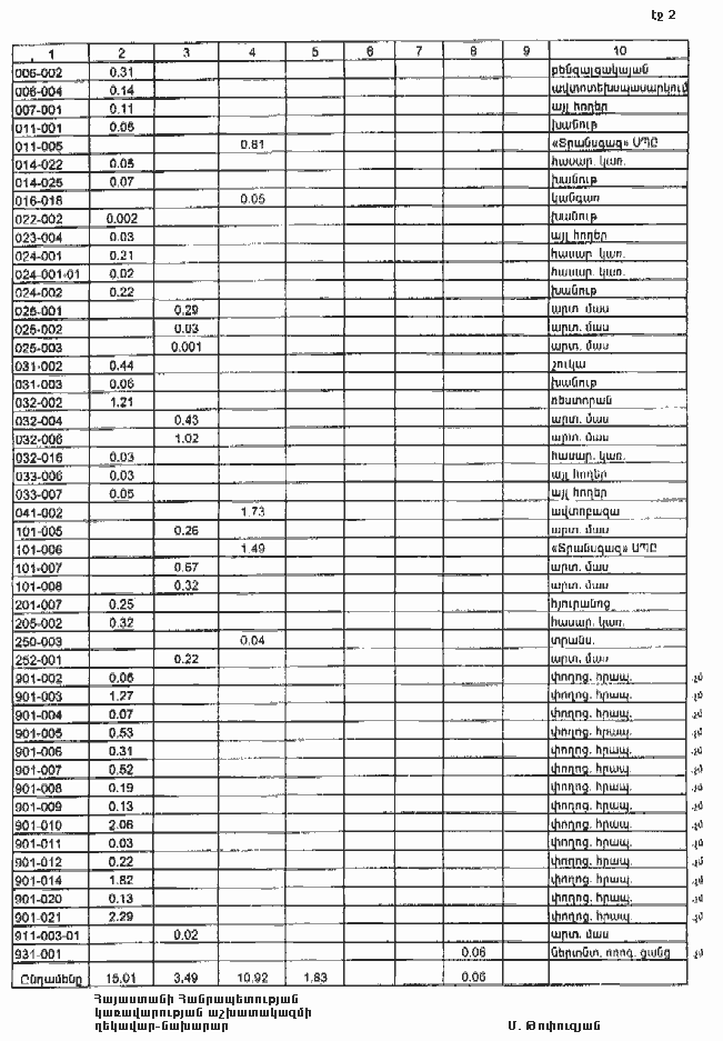 Վերին Պտղնիի գյուղական համայնքի հողային ֆոնդի առկայության և բաշխման մասին հաշվետվությունը՝ 2005 թվականի հունվարի 1-ի դրությամբ՝ համաձայն NN 8 և 9 հավելվածների: