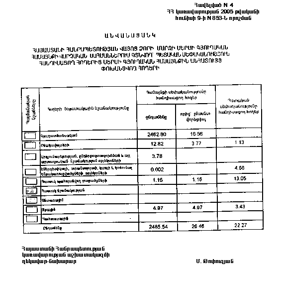 4. Ընդունել ի գիտություն Հայաստանի Հանրապետության Վայոց ձորի մարզի Սերսի գյուղական համայնքի հողային ֆոնդի առկայության և բաշխման մասին հաշվետվությունը` 2005 թվականի հունվարի 1-ի դրությամբ` համաձայն NN 8 և 9 հավելվածների: