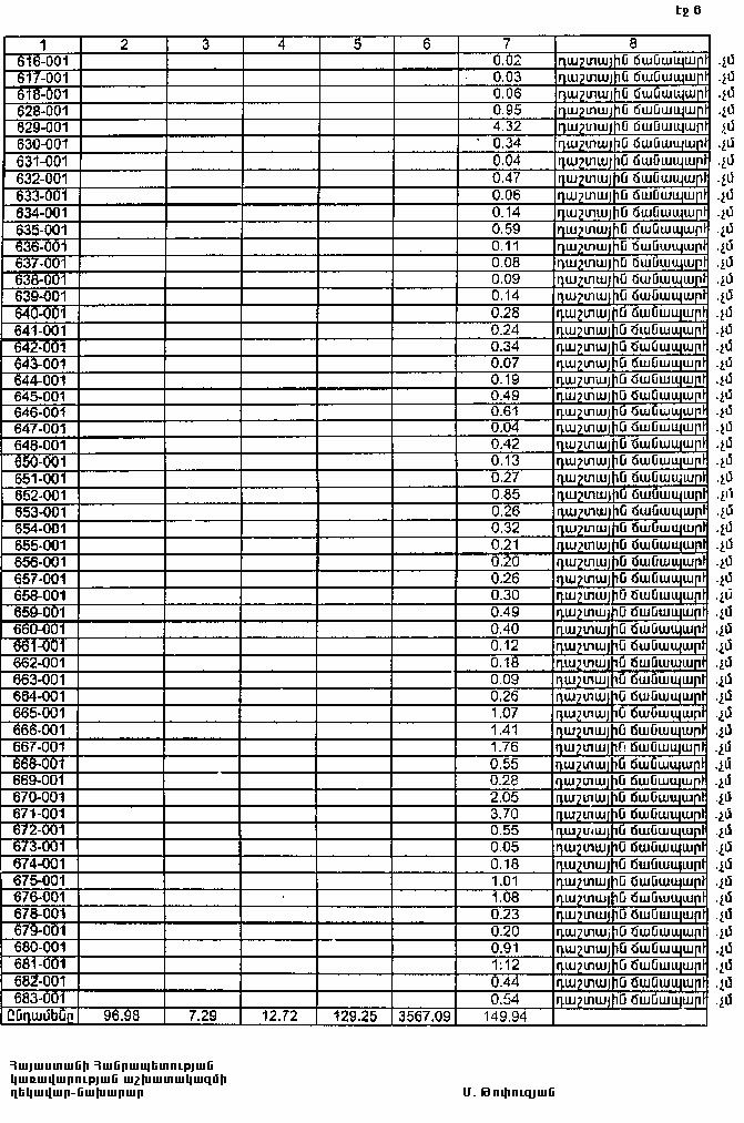6. Թույլատրել Հայաստանի Հանրապետության կառավարությանն առընթեր անշարժ գույքի կադաստրի պետական կոմիտեի նախագահին Հայաստանի Հանրապետության պետական գեոդեզիական ցանցի հավասարակշռման արդյունքների հիման վրա Հայաստանի Հանրապետության վարչատարածքային միավորների սահմանանիշերի կոորդինատների ժողովածուի հրատարակումից հետո հողային ֆոնդի ընթացիկ հաշվառման ժամանակ Հայաստանի Հանրապետության Վայոց ձորի մարզի Ելփինի գյուղական համայնքի հողային հաշվեկշռում սահմանված կարգով կատարել համապատասխան փոփոխություններ: