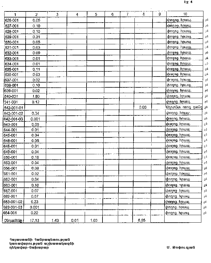 4. Ընդունել ի գիտություն Հայաստանի Հանրապետության Վայոց ձորի մարզի Աղնջաձորի գյուղական համայնքի հողային ֆոնդի առկայության և բաշխման մասին հաշվետվությունը՝ 2005 թվականի հունվարի 1-ի դրությամբ՝ համաձայն NN 8 և 9 հավելվածների: