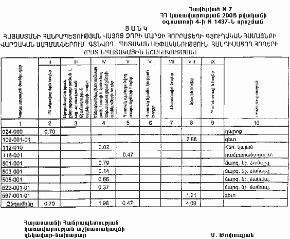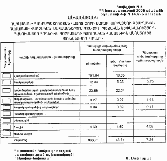 4 օգոստոսի 2005 թվականի N 1437-Ն