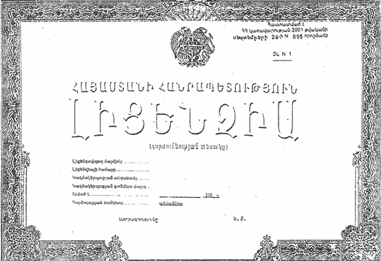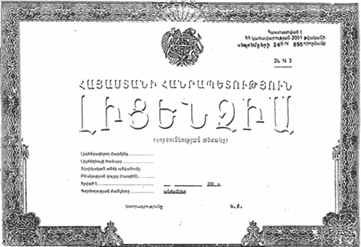 3. Հաստատել պարզ ընթացակարգով տրվող լիցենզիաների N N 1, 2 և 3 ձևերը (կցվում են):
