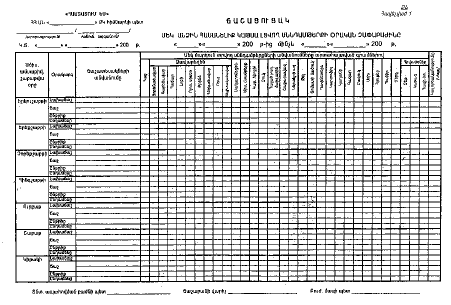 1. Հաստատել Հայաստանի Հանրապետության արդարադատության նախարարության քրեակատարողական հիմնարկներում պահվող դատապարտյալներին և կալանավորված անձանց տրվող սննդի հատկացման ճաշացուցակի ձևը, հավելված 1 (ձևը կցվում է):